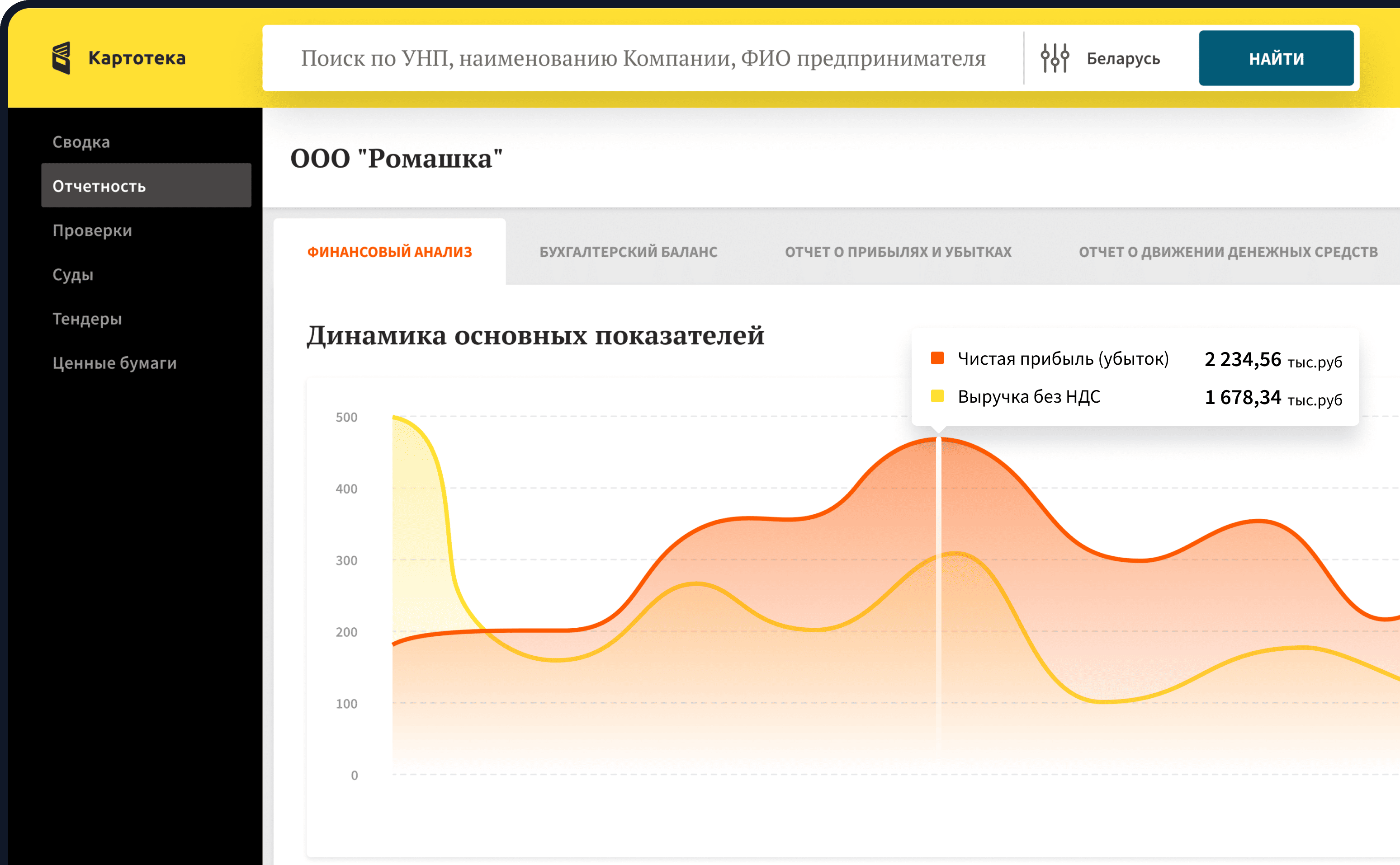 Облегчит сбор ключевой информации о существующих или потенциальных бизнес-партнерах. Поможет оценить благонадежность контрагентов, перспективы судебных разбирательств и сроки исполнения судебных решений. Обеспечит полной информацией для определения значимых рисков и точек контроля в сделках. Позволит мгновенно получать изменения данных о собственной компании в государственных реестрах